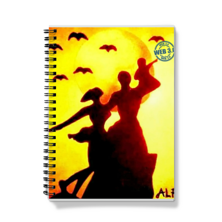 Visual description of the artwork The work shows three figures in silhouette facing a bright sun, in a warm and vibrant sunset atmosphere...